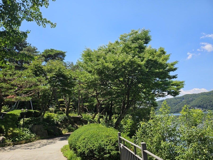 음식은 쏘쏘, 강을 낀 풍경이 예뻐서 마냥 있기 좋은 곳이다. 날이 워낙 좋아서 차에 타기 전에 잠깐 산책을 했다.