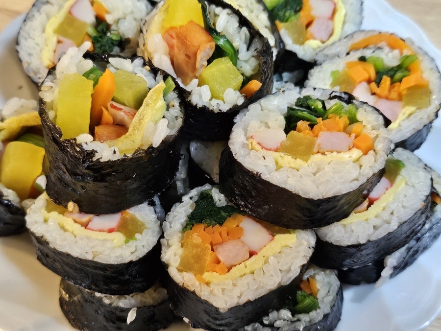 배가 고팠는데 마침 엄마가 김밥을 싸놓았다.