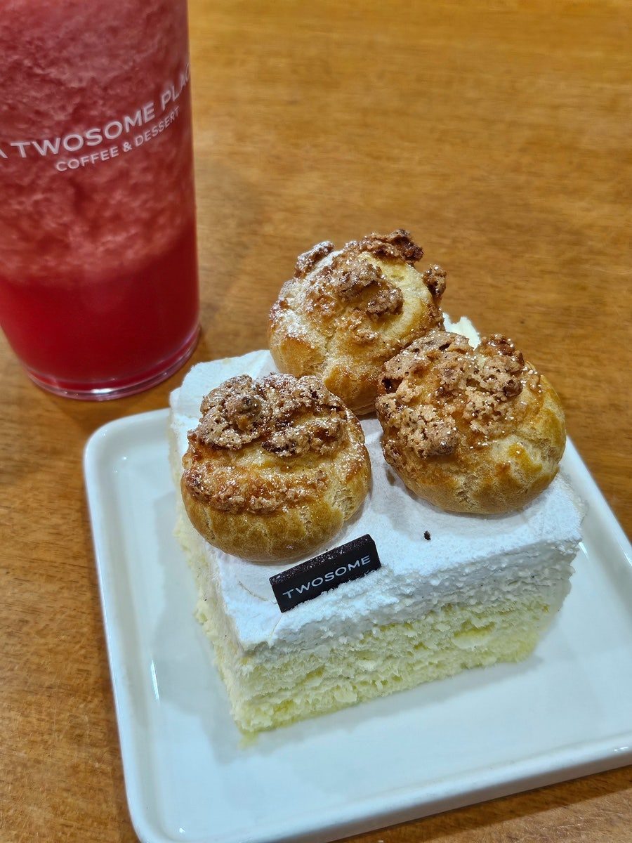 슈크림 빵 속이 텅 비어서 놀랐다. 아마 케이크랑 밸런스도 맞춰야 하고 속을 채우면 눅눅해지니까 그랬나 보다.