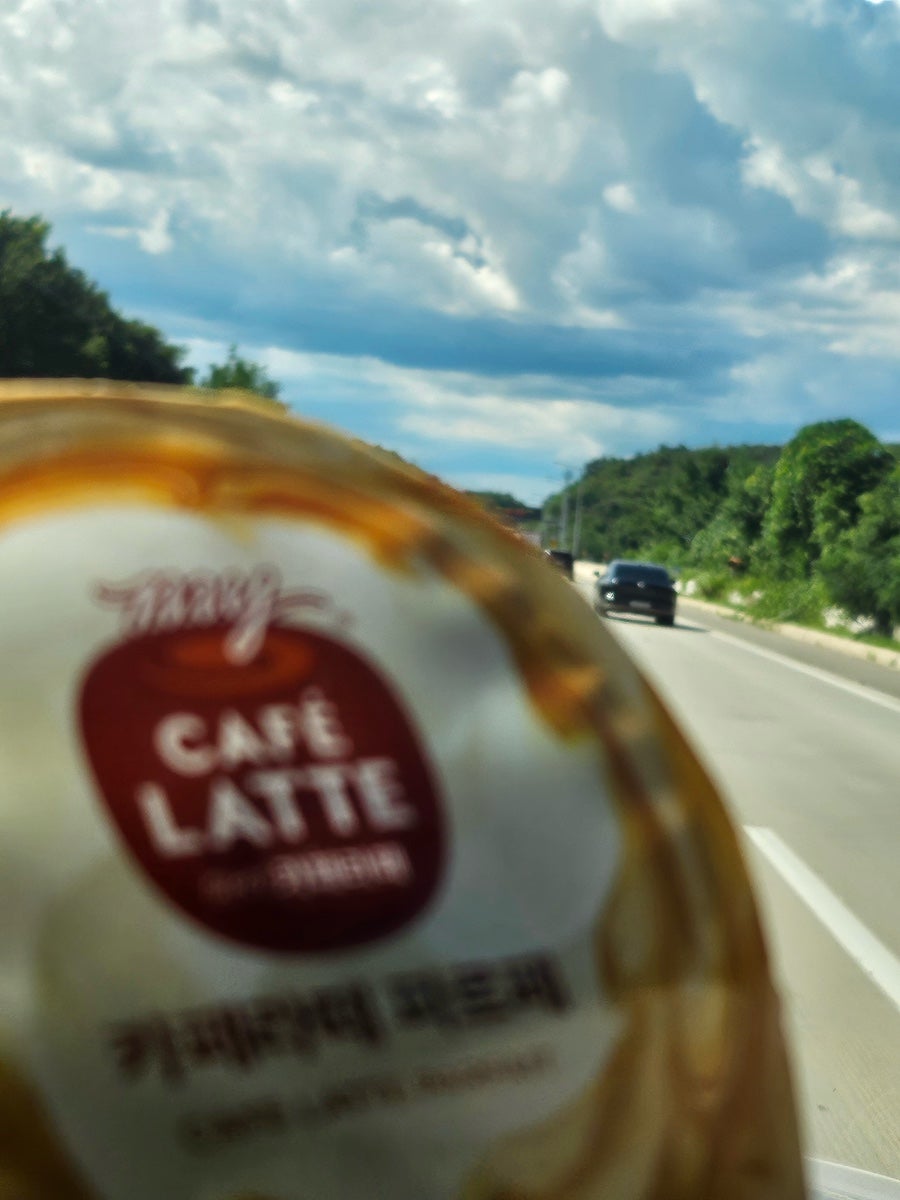 얼음컵이랑 물 그리고 카페라떼 파르페 사서 나왔다. 하늘이랑 같이 찍고 싶었는데 실패🤗