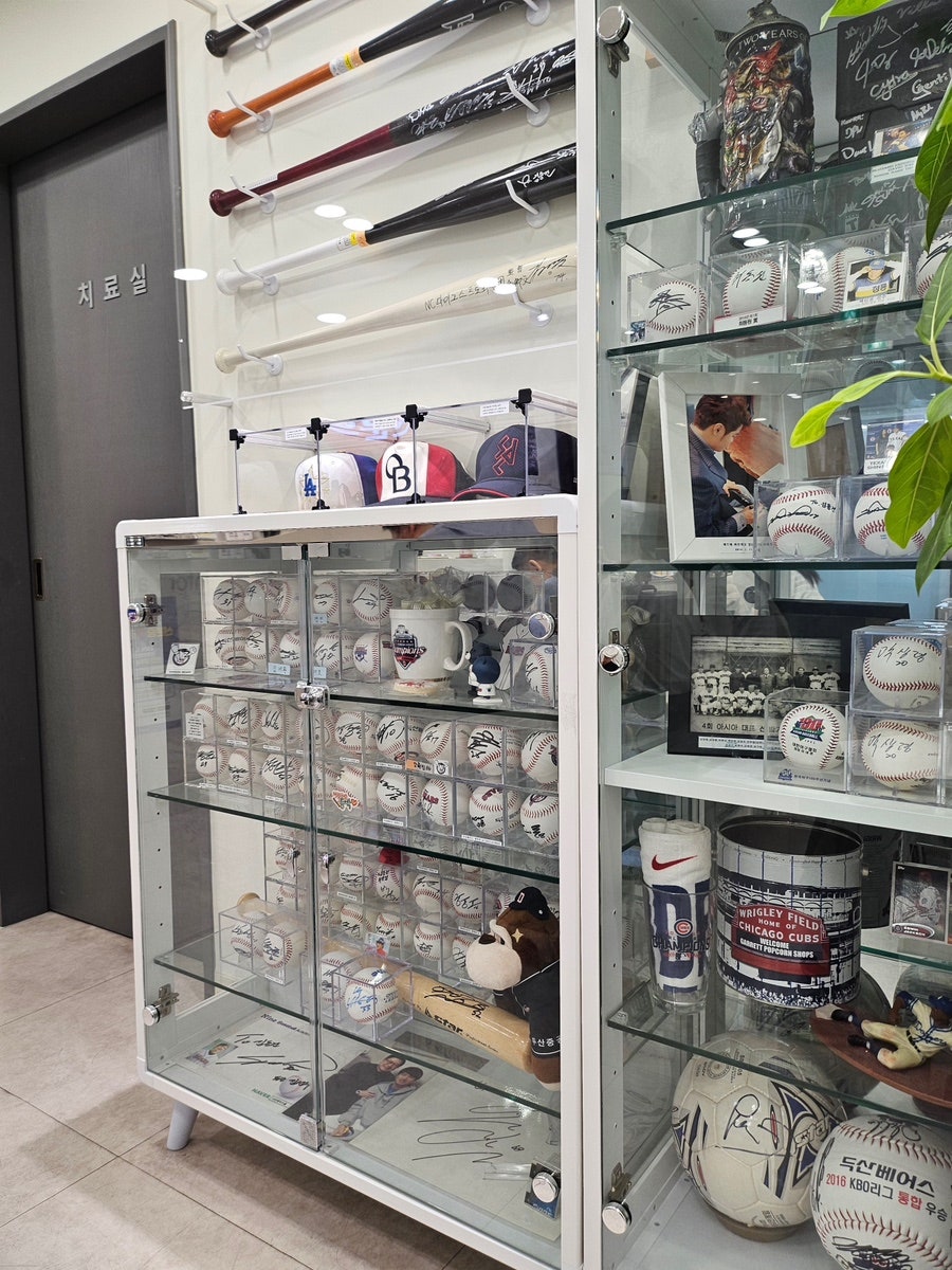 의사쌤이 엄청난 야구팬이신 것 같다. 아마 두산 팬이신 듯🙃 벽 한쪽이 완전 야구 박물관이다.