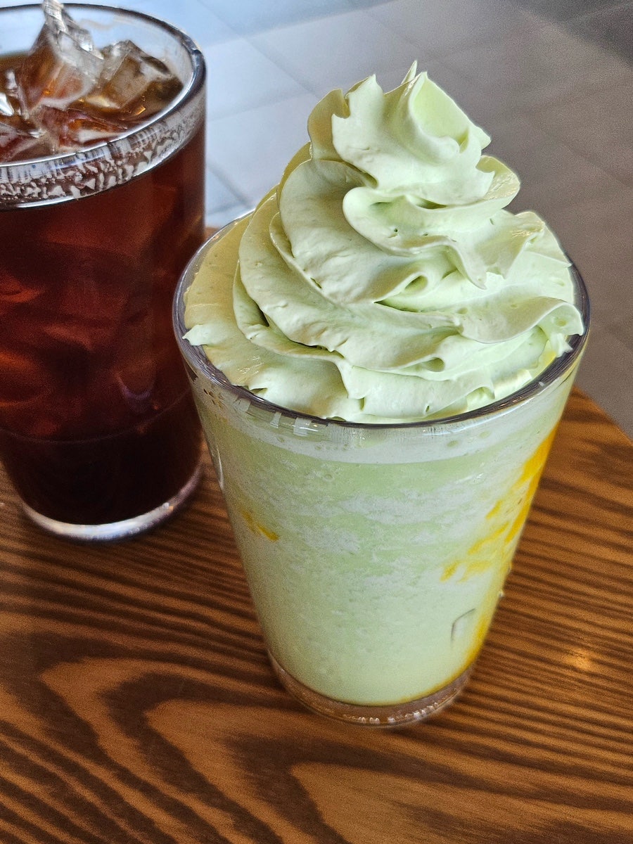 더 멜론 오브 멜로 프라푸치노, 일본에서 아주 인기가 많았던 음료라고 들었다. 맛은 멜론 알갱이가 씹히는 메로나 맛 음료😉